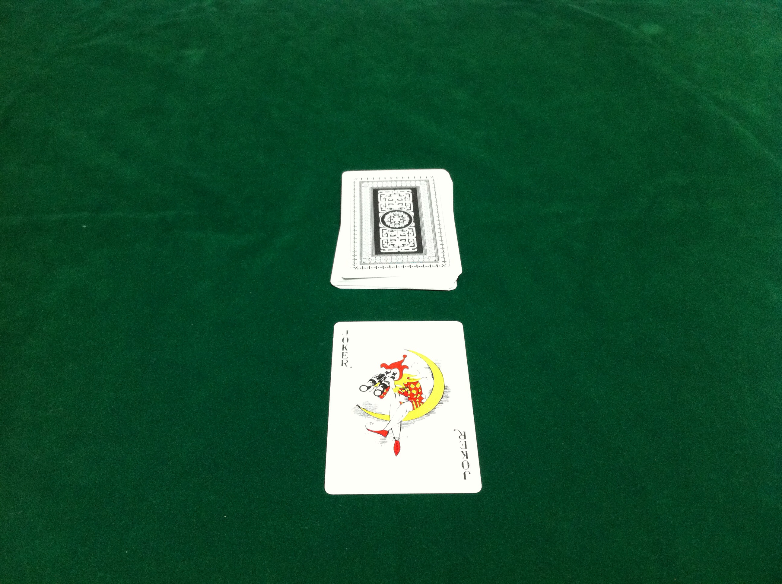 また、ジョーカーを1枚抜き出し、山札のすぐ側に表向きで置きます。